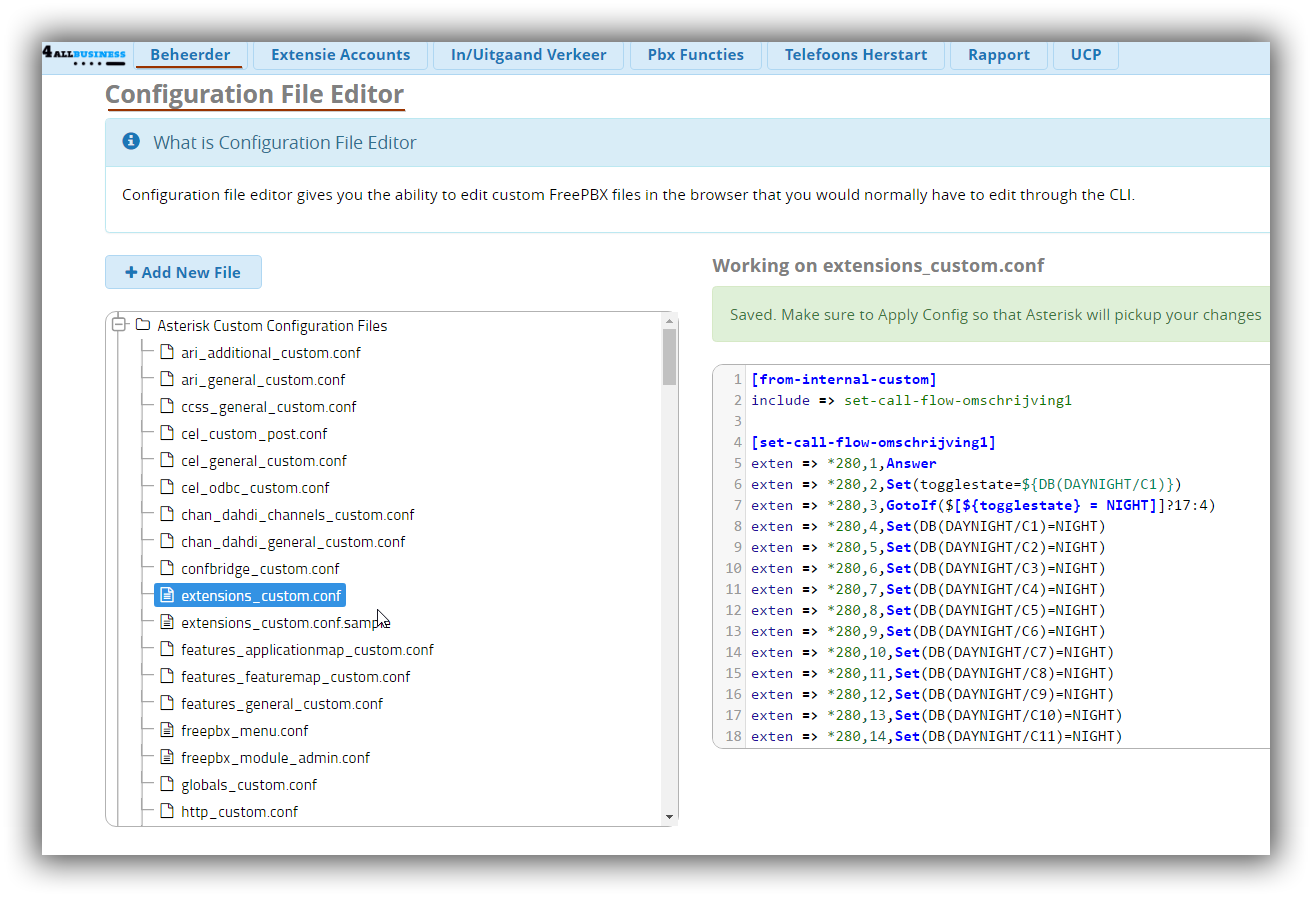 In de GUI vanaf FreePBX13, is het mogelijk de bestanden aan te passen via de webinterface.